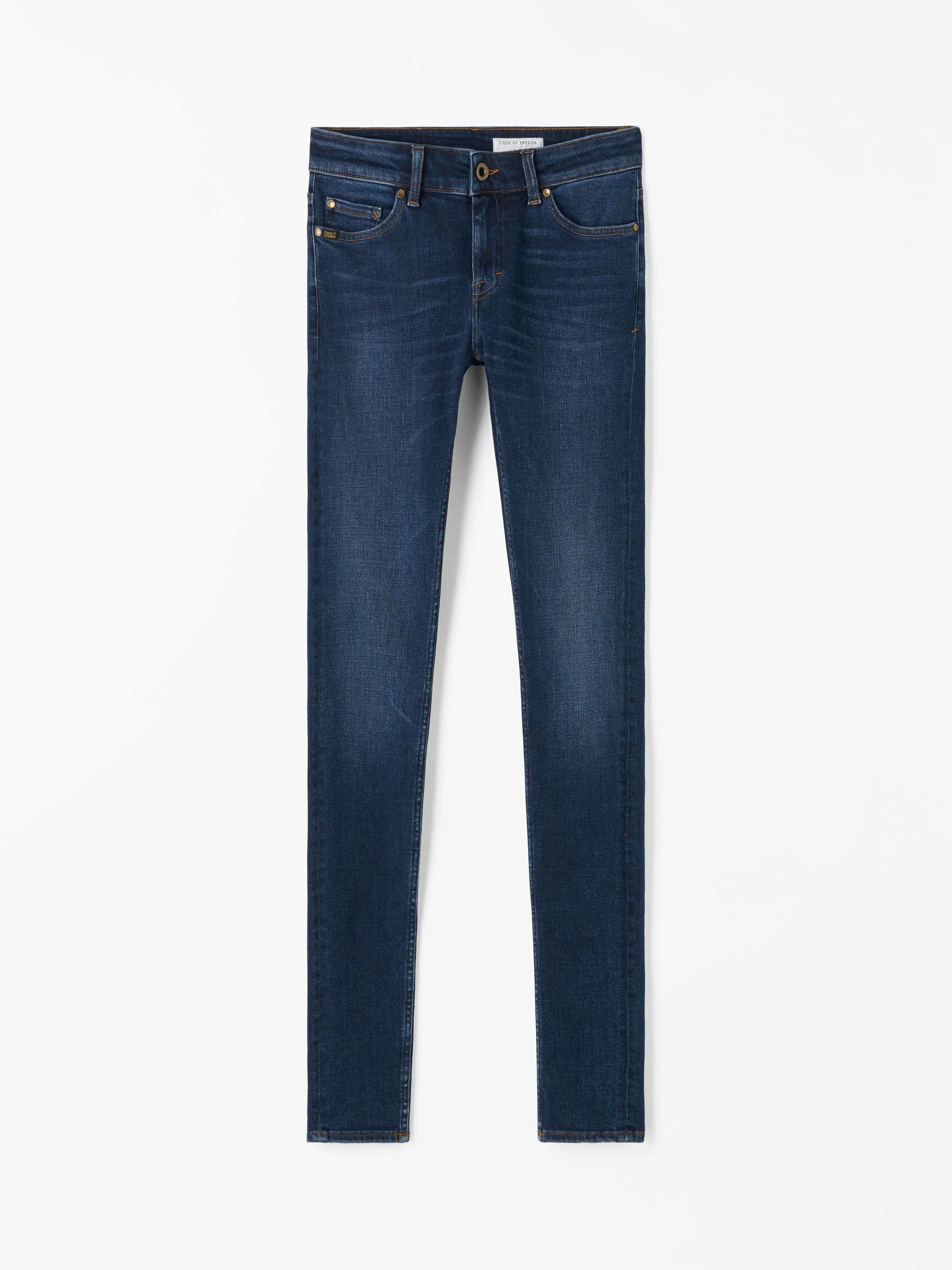 Product Details - 69% Cotton,24.5% Cotton Recycled,5% Polyester Recycled,1.5% Elastane - Skinny jeans - Five-pocket style - Mid waist with super-slim leg - Super stretch denim - The wash is called "Charm", which has a dark blue stonewash for a soft hand feel and authentic look - Branded button and rivets - Jacron logo patch at waistband - Made in Tunisia - Art No.10978525D