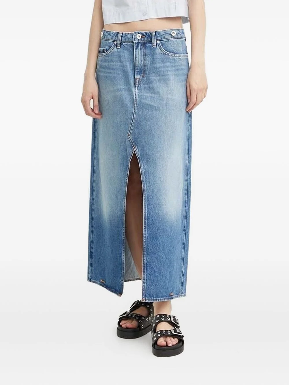 Tillis denim split maxi skirt Highlights - Light blue - Front split - Maxi length - High waist - Button fastening - Back yoke Imported Composition Cotton 100%
