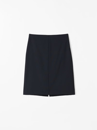Product Details - 54% Recycled Polyester, 44% Wool, 2% Elastane - Extra-Slim Fit - Fitted pencil skirt in recycled polyester wool blend with stretch plain weave - Wrinkle resistant packable fabric - Above-knee length - Concealed zip closure at back - Welt pocket at back - Slit at back - Cutline detail at front and back - Fully lined - Made in Romania - Model is 179 cm and wearing a size 36 - Art No.109797284