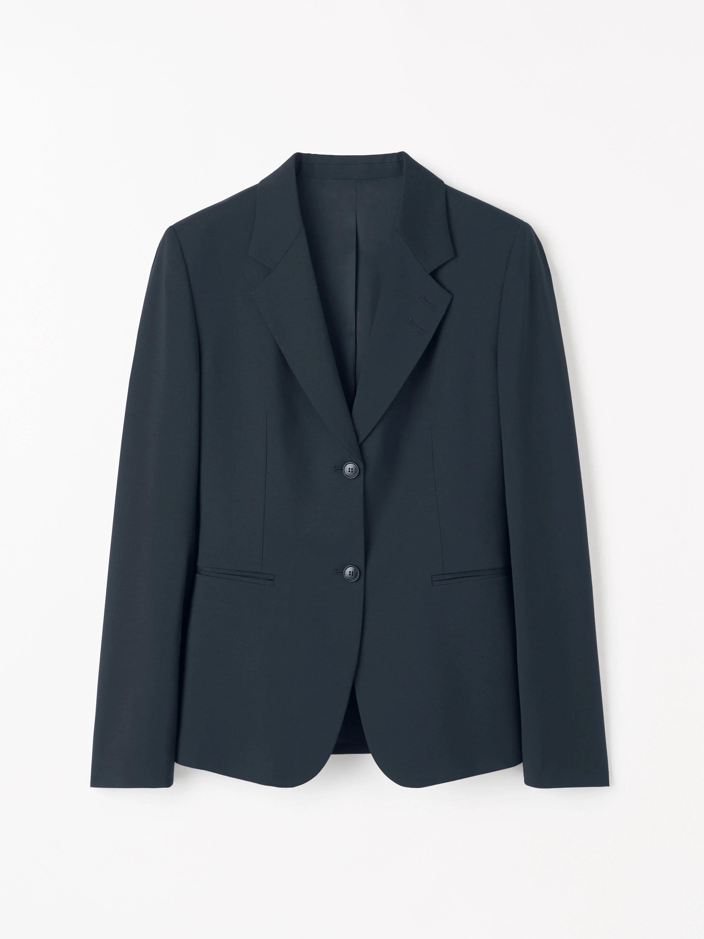 Product Details - 54% Polyester Recycled, 44% Wool, 2% Elastane - Everyday jacket in stretchy plain-weave fabric - Notched lapel and two-button closure - Sharp minimalist design - Made in Romania - Art No.11102409C