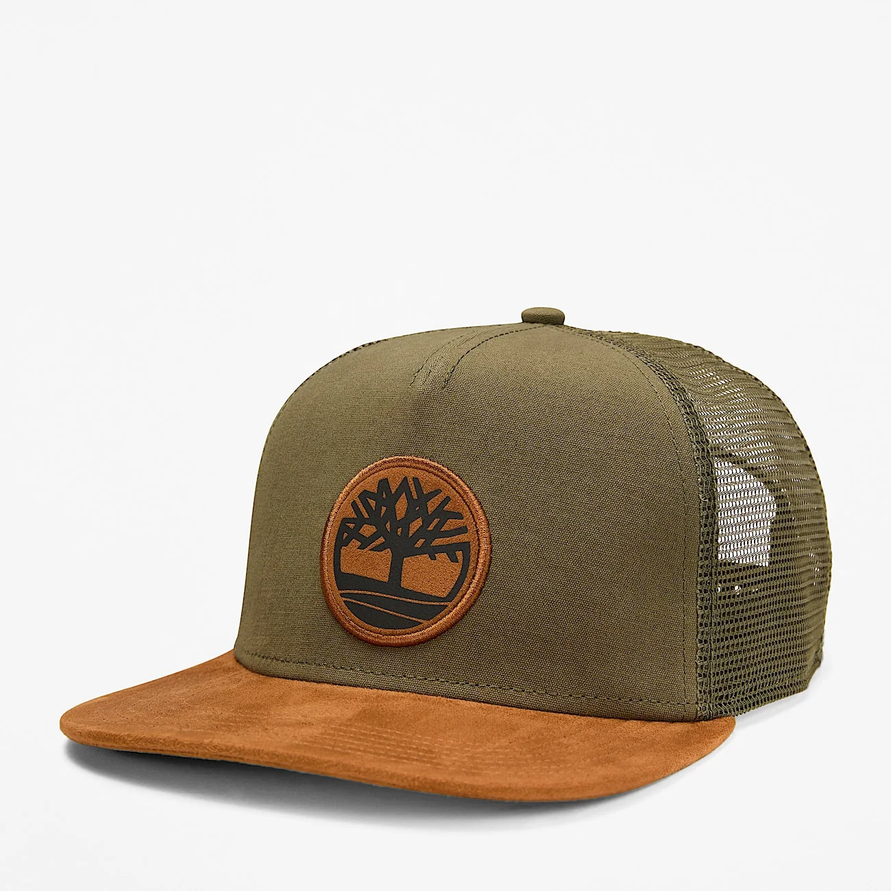 Style TB0A65NEA58 This elevated trucker cap features a printed Timberland tree patch, a flat faux suede brim, and breathable mesh panels. With an adjustable snapback fit and antimicrobial sweatband, it blends classic style with comfort. Product Detail - Printed Tree patch - Logo under button - Standard snap back - Cotton canvas with hard mesh and polyester faux suede brim - Mesh sweatband with antimicrobial treatment for odor control - Flat brim - Dimensions (cm): Adjustable from 58 cm - Dimensions (in): Adjustable from 23"