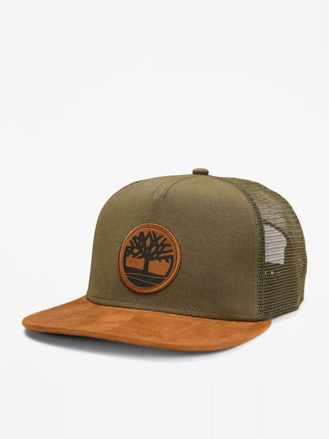 Style TB0A65NE001 This elevated trucker cap features a printed Timberland tree patch, a flat faux suede brim, and breathable mesh panels. With an adjustable snapback fit and antimicrobial sweatband, it blends classic style with comfort. Product Detail - Printed Tree patch - Logo under button - Standard snap back - Cotton canvas with hard mesh and polyester faux suede brim - Mesh sweatband with antimicrobial treatment for odor control - Flat brim - Dimensions (cm): Adjustable from 58 cm - Dimensions (in): Adjustable from 23"