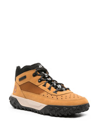 GreenStride™ Motion 6 sneakers Highlights - Camel brown/black - Calf leather - Water-repellent - Mesh panelling - Debossed logo to the side - Perforated detailing - Pull-tab at the heel - Round toe - Bungee lacing system - Branded insole - Eva midsole - Flat rubber sole Imported Composition Lining: Fabric 100% Outer: Calf Leather 100%, Fabric 100% Sole: Rubber 100% SIZE & FIT Measurement HEEL 1.57 in(4 cm) HEIGHT 3.54 in(9 cm) Sole height 1.18 in(3 cm)