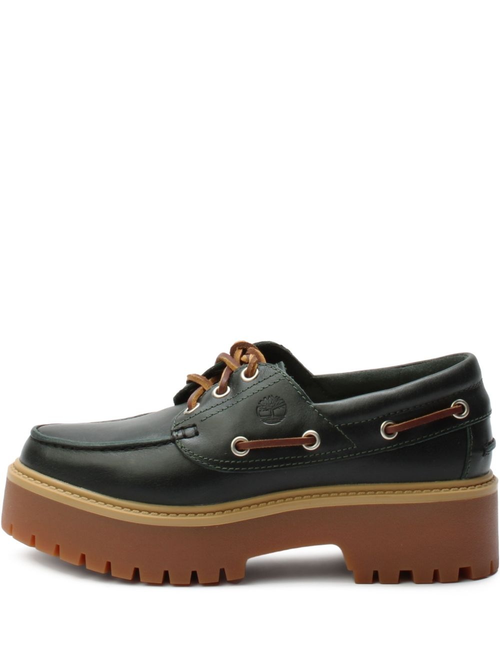 Stone Street "Dark Green Full Grain" boat shoes Highlights - Dark green - Front lace-up fastening - Panelled design - Embossed logo to the side - Almond toe - Siganture rebotl™ fabric lining - Chunky rubber sole Imported Composition Lining: Fabric 100% Outer: Leather 100% Sole: Rubber 100%