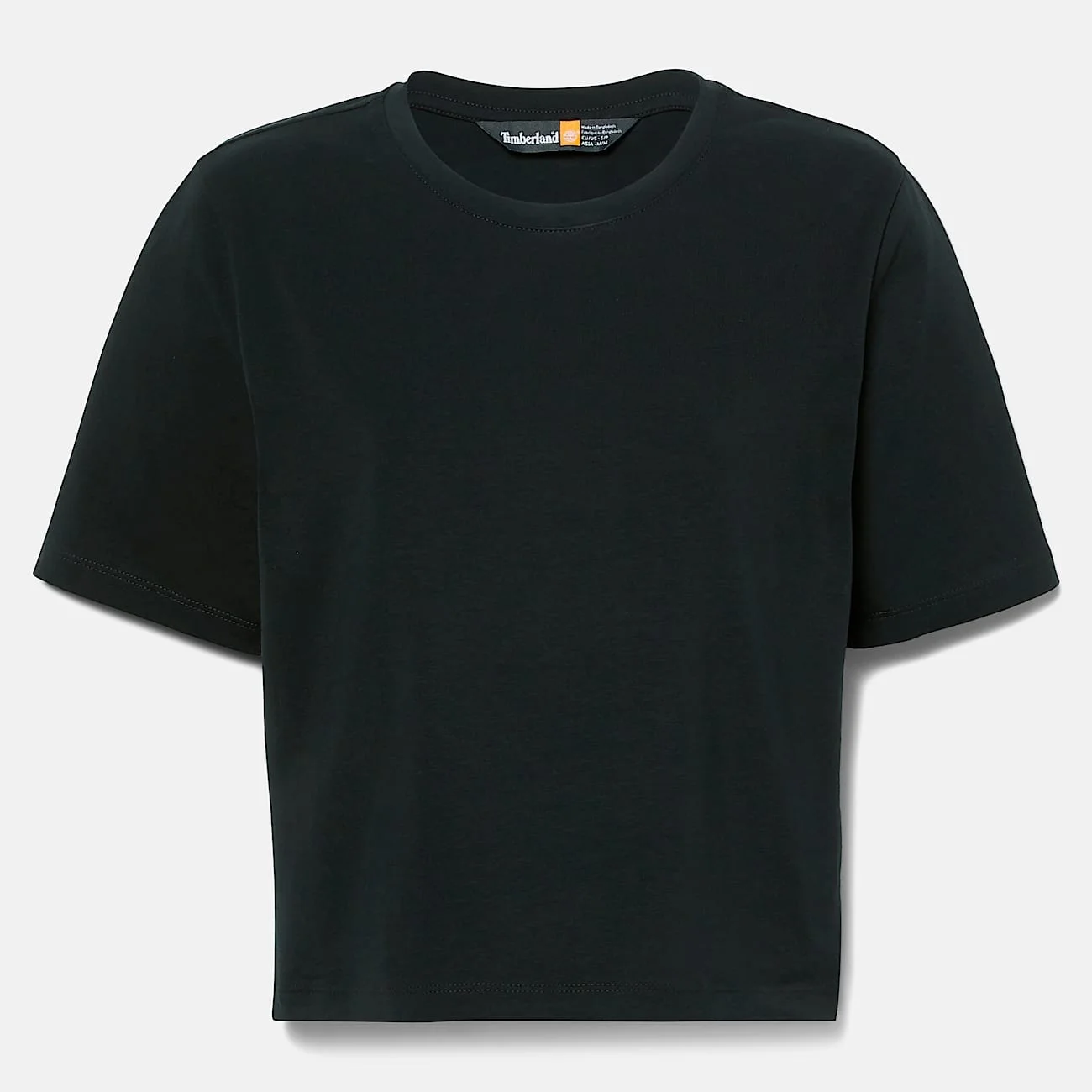 Style TB0A5NHT001 This comfy 95% organically grown cotton tee comes in a stylish cropped silhouette with stretch fabric and a slim fit. Features 50% Organic Cotton This product is made with at least 50% organically-grown cotton, grown without genetically modified seeds, synthetic fertilizers or pesticides. Stretch Constructed with elasticized fabric for a stretchy fit that enhances mobility and comfort. Product Detail - 95% Organically Grown Cotton, 5% Elastane - Center Back Length: 17.25" (43.8 cm) - Weight: 190 g/m2 - Branding: Embroidered logo - Fit: Slim - Cropped silhouette - Stretch fabric - Imported Care Instructions - Machine wash cold. Wash separately. - Only non-chlorine bleach when needed. - Tumble dry low. - Do not dry clean.