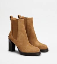 Characterized by an embossed rubber pebble outsole and a rubber heel that slightly covers the heel, these Chelsea boots come with an elegant and sophisticated line. Crafted in calfskin suede, they feature the Tod's monogram stamped on the upper edge. - Made in Italy - Ankle boots with heel - Calfskin suede upper - Side elastic inserts - Stamped Tod's monogram - Leather insole - Rubber heel 3.1 ins - Rubber outsole - Maintenance and care cards included - Branded dustbag