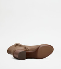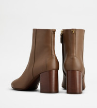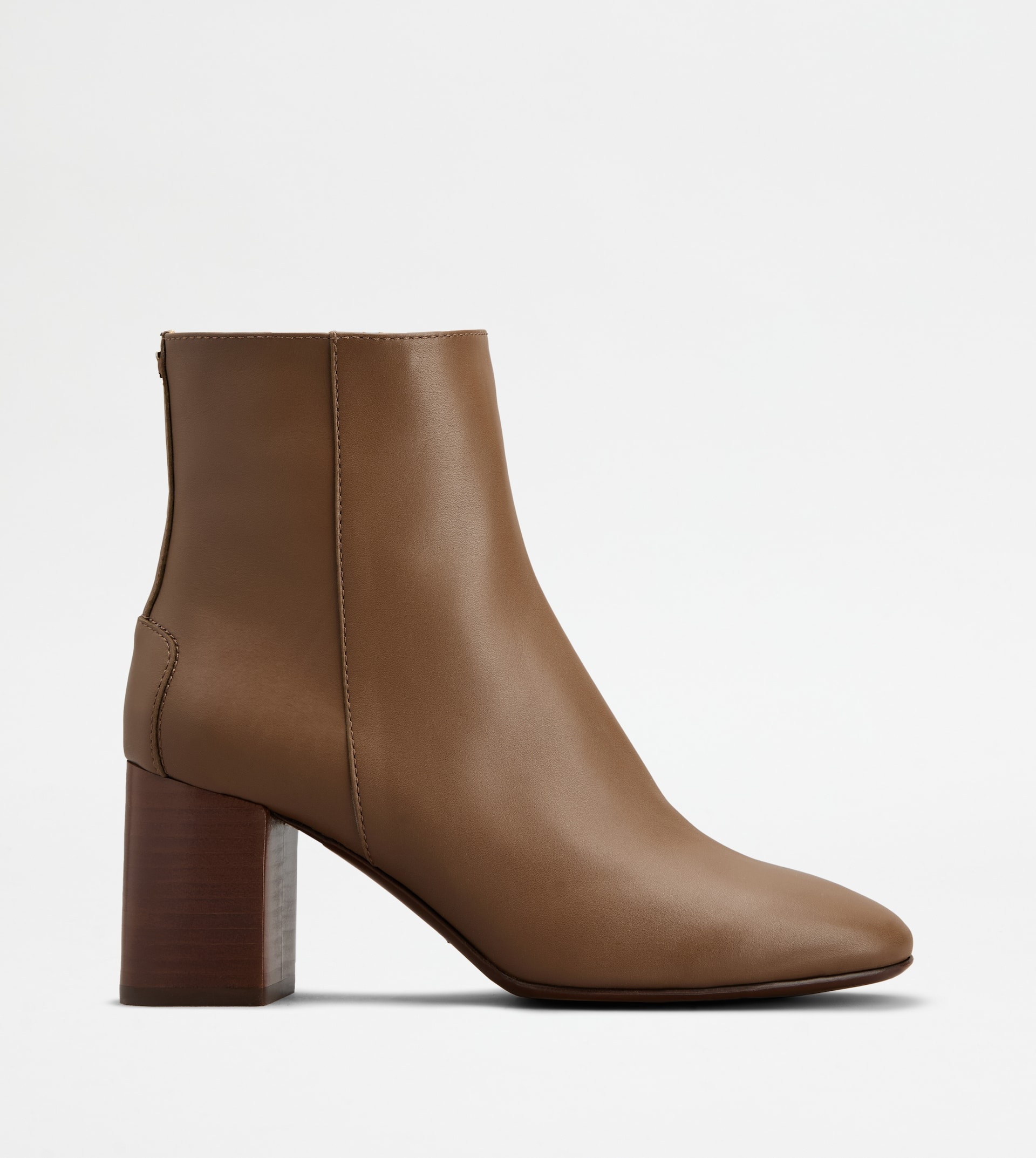 Ankle boots with essential line, crafted in soft calfskin leather. Enriched by the T Timeless logo on the back, they come with a zip on the inside, a block heel and leather outsole with rubber section. - Made in Italy - Ankle boots in leather - Calfskin leather upper - Metal T Timeless logo on the back - Zip on the inside - Leather lining and insole - Leather heel 2.8 ins - Leather and rubber outsole - Maintenance and care cards included - Branded dustbag