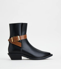 Ankle boots in elegant leather with strap and branded metal buckle, tapered toe, leather Texan heel and rubber outsole. - Made in Italy - Women's Tod's ankle boots - Leather upper - Tapered toe - Branded metal strap and buckle - Stitched welt - Leather heel with rubber insert 4 cm - Rubber outsole - Maintenance and care cards included - Branded dustbag