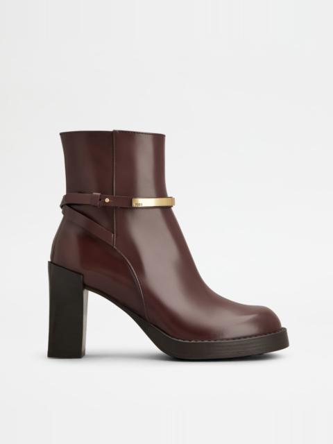 ANKLE BOOTS IN LEATHER - BURGUNDY