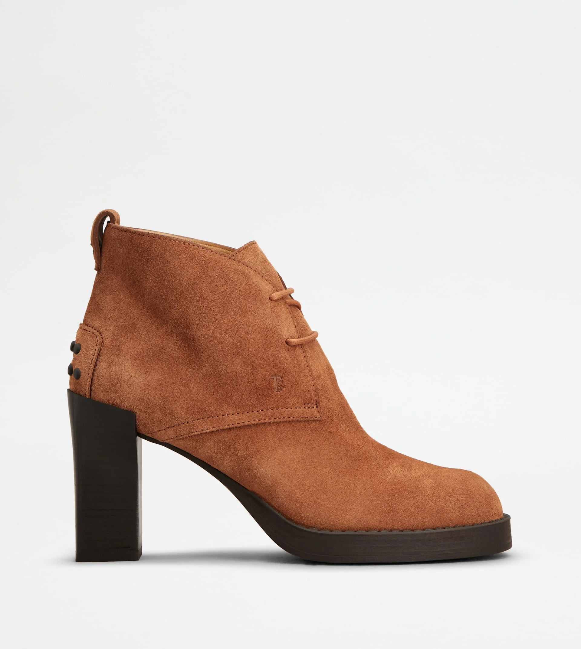 Characterized by a rubber outsole with a slightly over-the-counter heel, these lace-up ankle boots come with an elegant and sophisticated line. Crafted in calfskin suede, they feature the stamped Tod's monogram and a loop on the back. - Made in Italy - Women's ankle boots with heel - Calfskin suede upper - Stamped Tod's monogram - Leather insole - Rubber heel 3.1 ins - Rubber outsole - Maintenance and care cards included - Branded dustbag