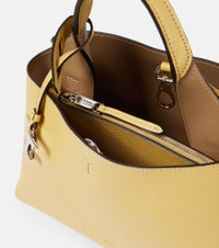 Product Details - Material: leather - Lining: leather - Made in Italy - Designer color name: Flan Corda - Includes: box, dust bag - Protective feet - Top handle, Detachable shoulder strap - Hardware color: silver - Closure: lobster-clasp fastening - Internal details: two internal compartments - Item number: P01039153 Size & Fit - Height 17cm-6.5" - Max. width 23cm-9" - Max. depth 14,5cm-5.5" - Length of handle 22cm-8.5" - Min. length shoulder strap 93cm-36.5" - Max. length shoulder strap 113cm-44.5"