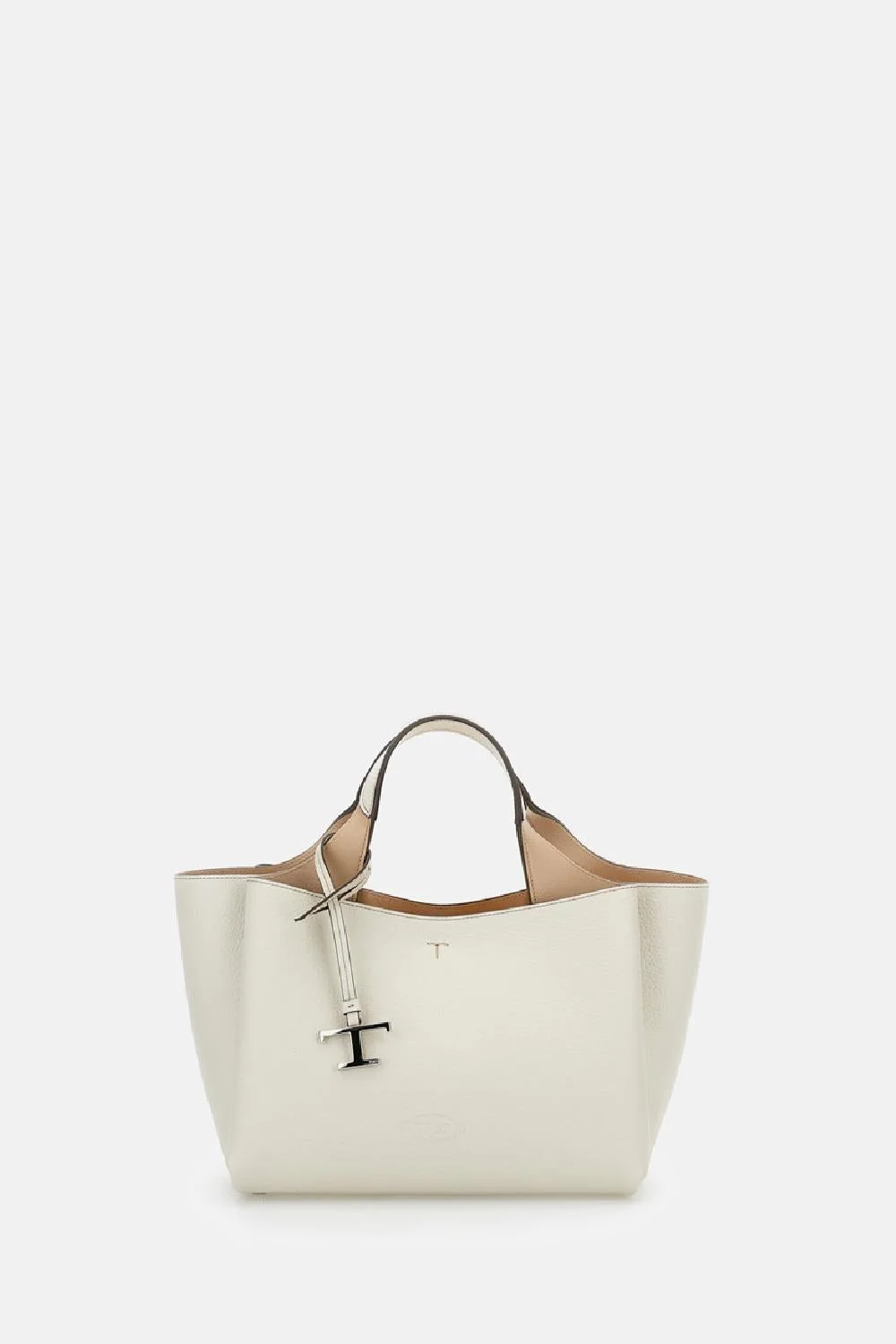 Leather handbag with double handles. Removable and adjustable shoulder strap. Made in Italy Removable silver 'T' charm Details and Care Color: Bianco Composition: 100% CALFSKIN Made in: ITALY Sku: XBWAPAFL100QRI1O92 Size and Fit W 29 cm x H 19,5 cm x D 18 cm