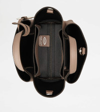 Bag in calfskin leather, with Tod's logo stamped on the front, two flat handles and adjustable, removable shoulder strap. The interior comes with a wide central compartment and two small additional compartments, with flat pockets that act as dividers. An elegant creation enriched by distinctive iconic detailing, such as the branded metal T Timeless pendant and the T-stitching. - Dimensions: L 9.4 ins x H 5.1 ins x D 4.3 ins - Handle: height (drop) 3.7 ins - Adjustable and removable shoulder strap: length max 44.3 ins - Made in Italy - Bag in leather - Item crafted in calfskin leather - Tod's logo stamped on the front - Removable pendant with metal T Timeless accessory - Metal snap hook and ring closure - 3 compartment interior - Two internal flat pockets - Branded metal feet - Maintenance and care cards included - Branded dustbag