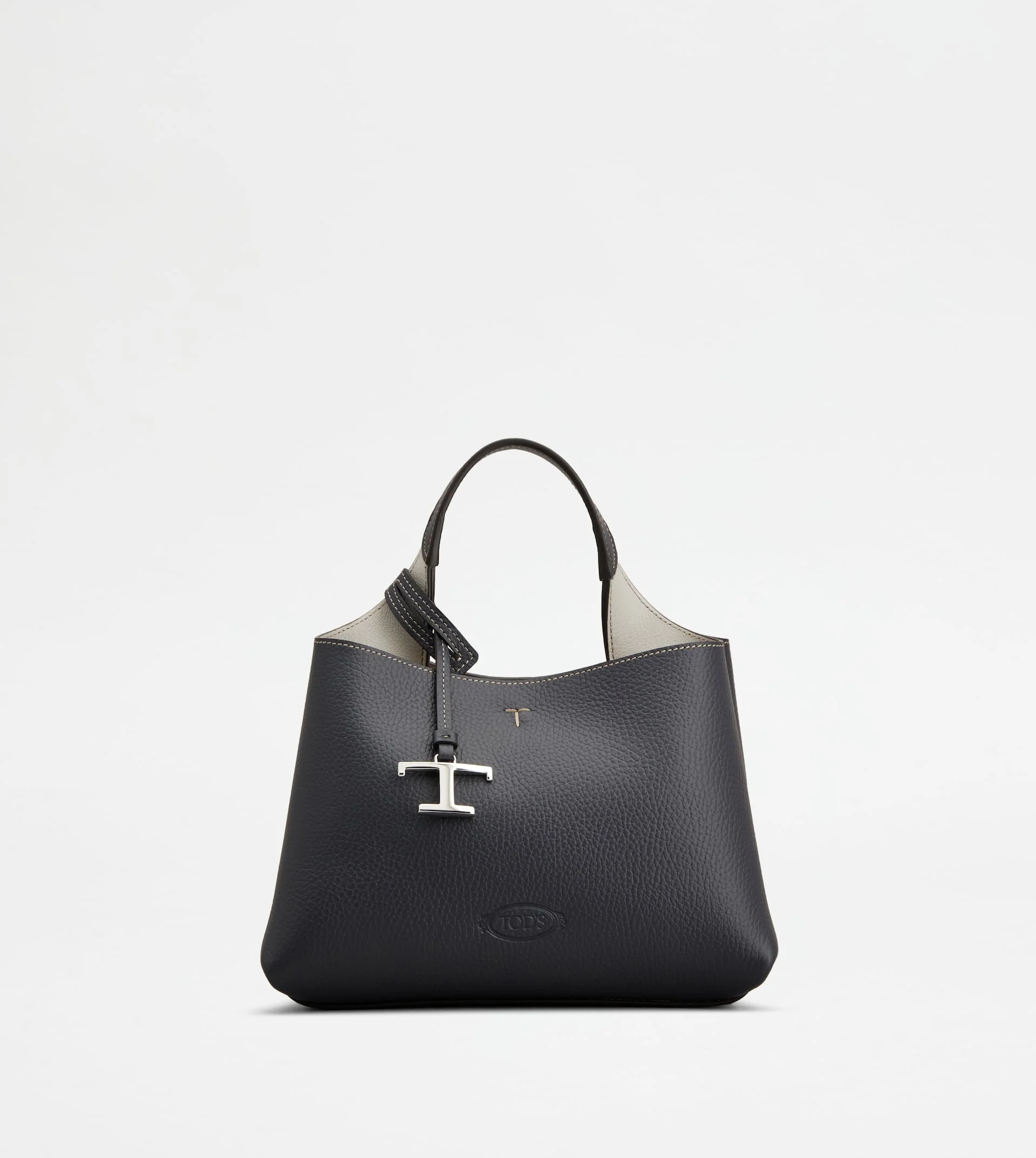 Bag in soft exposed grain leather, with Tod's logo stamped on the front, flat handle and removable shoulder strap. The interior comes with 2 compartments separated by a central zipped pocket. An elegant creation enhanced by distinctive iconic detailing, such as the metal T Timeless pendant and T-stitching. - Dimensions: L 9.8 ins x H 6.7 ins x D 5.7 ins - Handle: height (drop) 4.3 ins - Adjustable and removable shoulder strap: length 44.3 ins max - Made in Italy - Bag in leather - Item crafted in leather - Tod's logo stamped on the front - Removable pendant with metal T Timeless accessory - Snap hook and metal ring closure - 2 compartment interior - Internal flat zipped pocket - Brande metal feet - Maintenance and care cards included - Branded dustbag