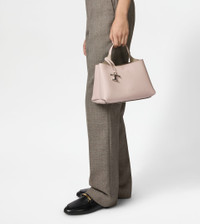 Bag in soft exposed grain leather, with Tod's logo stamped on the front, flat handle and removable shoulder strap. The interior comes with 2 compartments separated by a central zipped pocket. An elegant creation enhanced by distinctive iconic detailing, such as the metal T Timeless pendant and T-stitching. - Dimensions: L 9.8 ins x H 6.7 ins x D 5.7 ins - Handle: height (drop) 4.3 ins - Adjustable and removable shoulder strap: length 44.3 ins max - Made in Italy - Bag in leather - Item crafted in leather - Tod's logo stamped on the front - Removable pendant with metal T Timeless accessory - Snap hook and metal ring closure - 2 compartment interior - Internal flat zipped pocket - Brande metal feet - Maintenance and care cards included - Branded dustbag