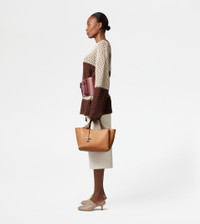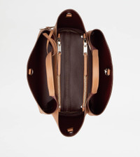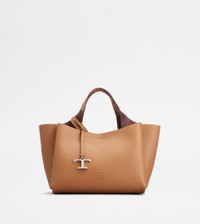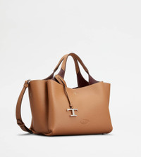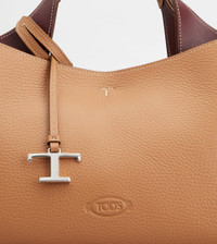Bag in soft exposed grain leather, with Tod's logo stamped on the front, flat handles and removable shoulder strap. The interior comes with three compartments separated by zipped central pockets. An elegant creation enhanced by distinctive iconic detailing, such as the metal T Timeless pendant and T-stitching. - Dimensions: L 11.4 ins x H 7.7 ins x D 7.1 ins - Handles: height (drop) 5.9 ins - Adjustable and removable shoulder strap - Made in Italy - Bag in leather - Item crafted in leather - Tod's logo stamped on the front - Removable pendant with metal T Timeless accessory - Snap hook closure - 3 compartment interior - 2 internal flat zipped pockets - Maintenance and care cards included - Branded dustbag