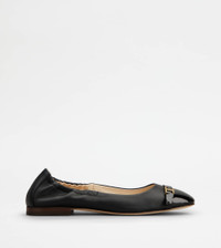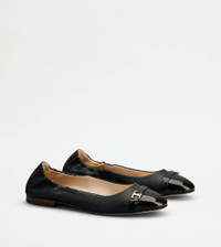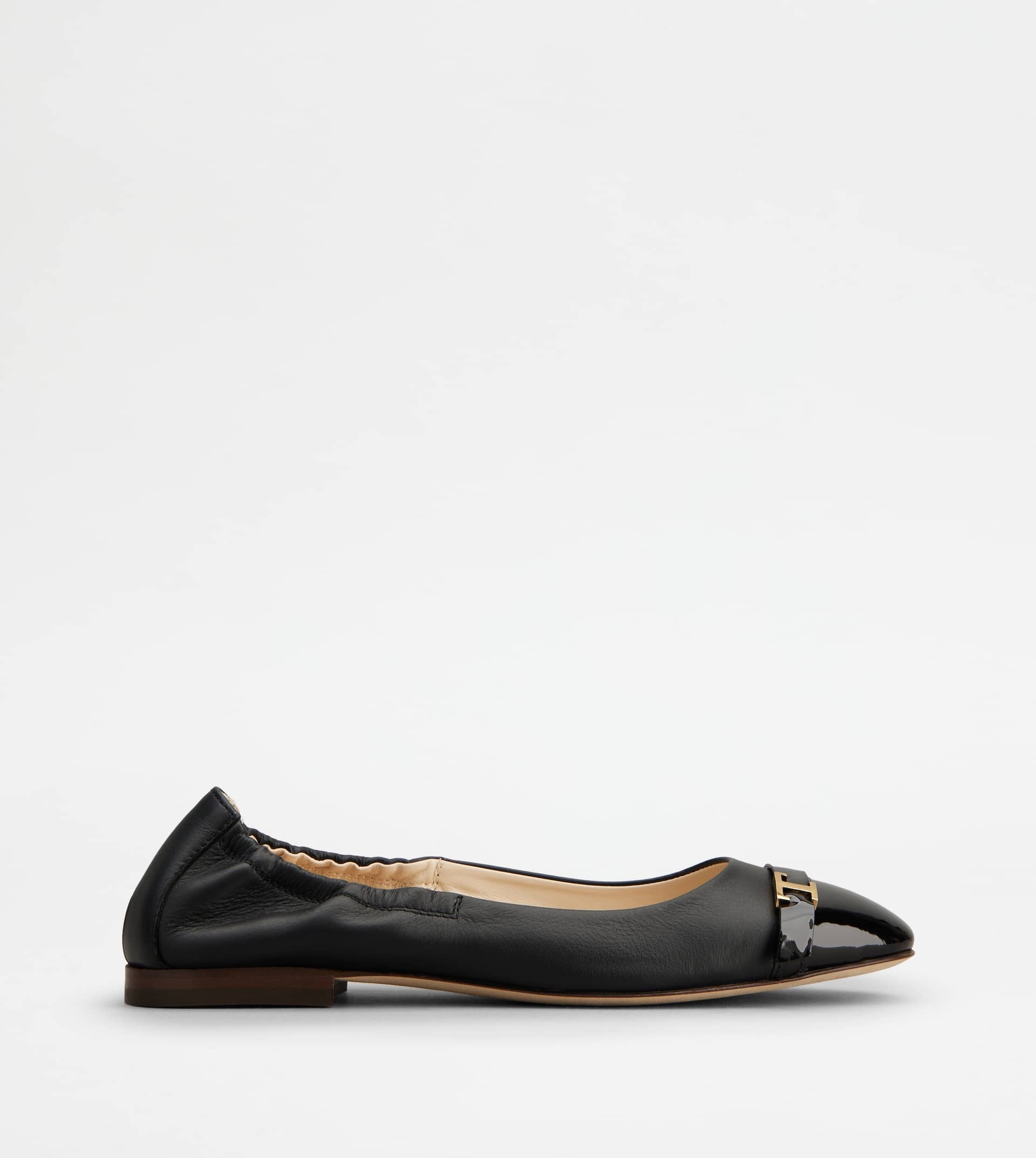 Ballerinas in calfskin leather with patent leather toe and mini metal T Timeless accessory. Featuring a leather outsole and elastic insert upper edge, they are a refined style that combines comfort and femininity. - Made in Italy - Ballerinas in leather - Calfskin leather upper - Strap with metal T Timeless accessory - Elastic insert on the edge - Leather insole - Leather outsole - Maintenance and care cards included - Branded dustbag