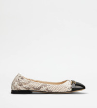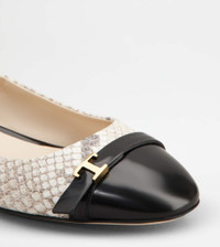 Ballerinas in reptile print leather, with smooth leather toe and mini metal T Timeless accessory. Featuring a leather outsole and elastic insert upper edge, they are a refined style that combines comfort and femininity. - Made in Italy - Reptile print ballerinas - Calfskin leather upper - Strap with metal T Timeless accessory - Elastic insert on the edge - Leather insole - Leather outsole - Maintenance and care cards included - Branded dustbag