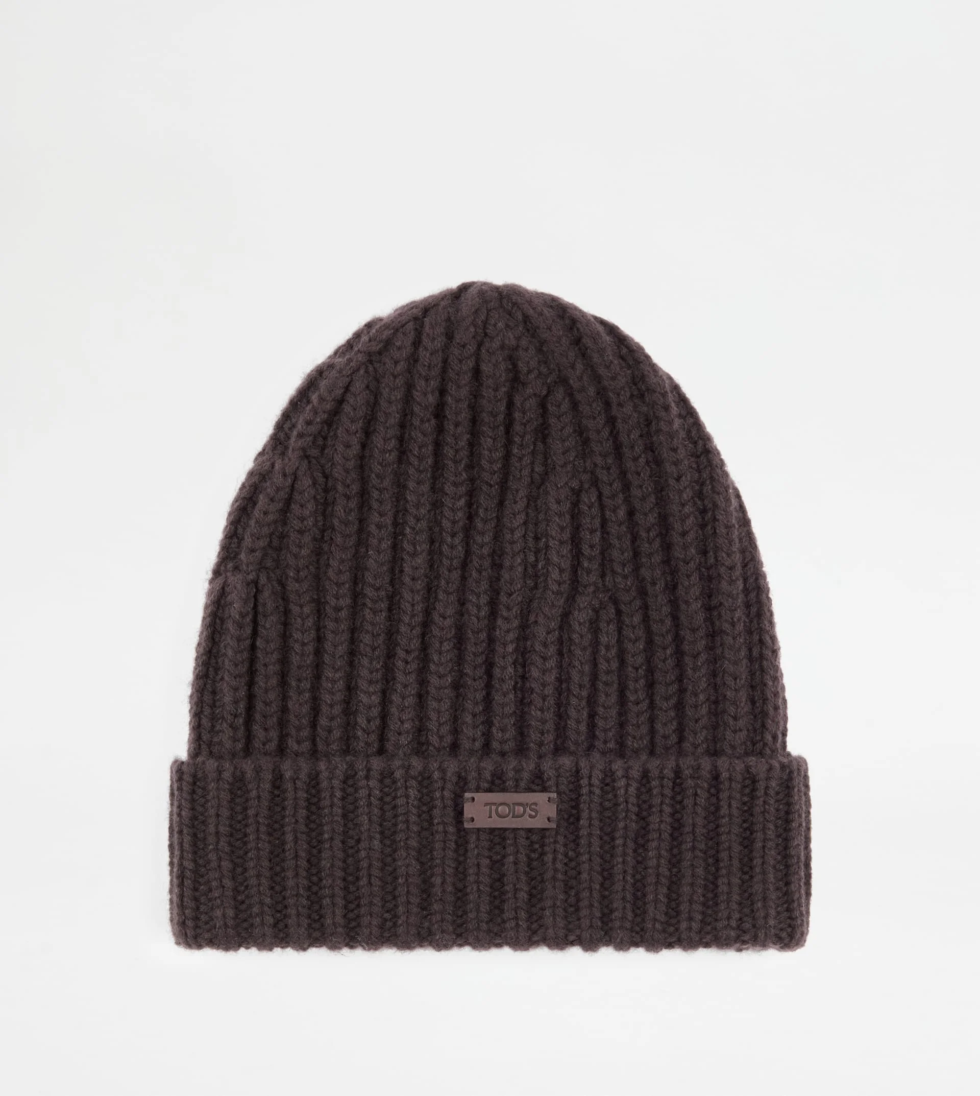 Beanie in cashmere with English rib knitting and leather Tod's tag applied on the turn-up. Soft and warm, it is a versatile and refined accessory. - Made in Italy - Ribbed beanie - Composition: 100% cashmere - Maintenance and care cards included