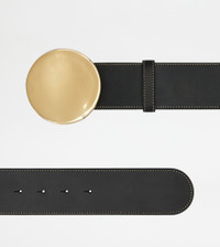 Belt characterized by a metal buckle with Tod's logo, inspired in shape and outline by a coin. Crafted in soft leather, it is a perfect accessory to complement a bold and sophisticated look. - Made in Italy - Belt in leather - Item crafted in calfskin leather - Branded metal buckle - Belt width: 2 ins - Maintenance and care cards included - Branded dustbag