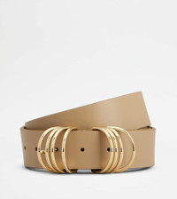 Belt in calfskin leather with tongue buckle and branded metal rings. A versatile and elegant accessory for the everyday look. - Made in Italy - Belt in leather - Item crafted in calfskin leather - Branded metal buckle and rings - Belt width: 1.4 ins - Maintenance and care cards included - Branded dustbag