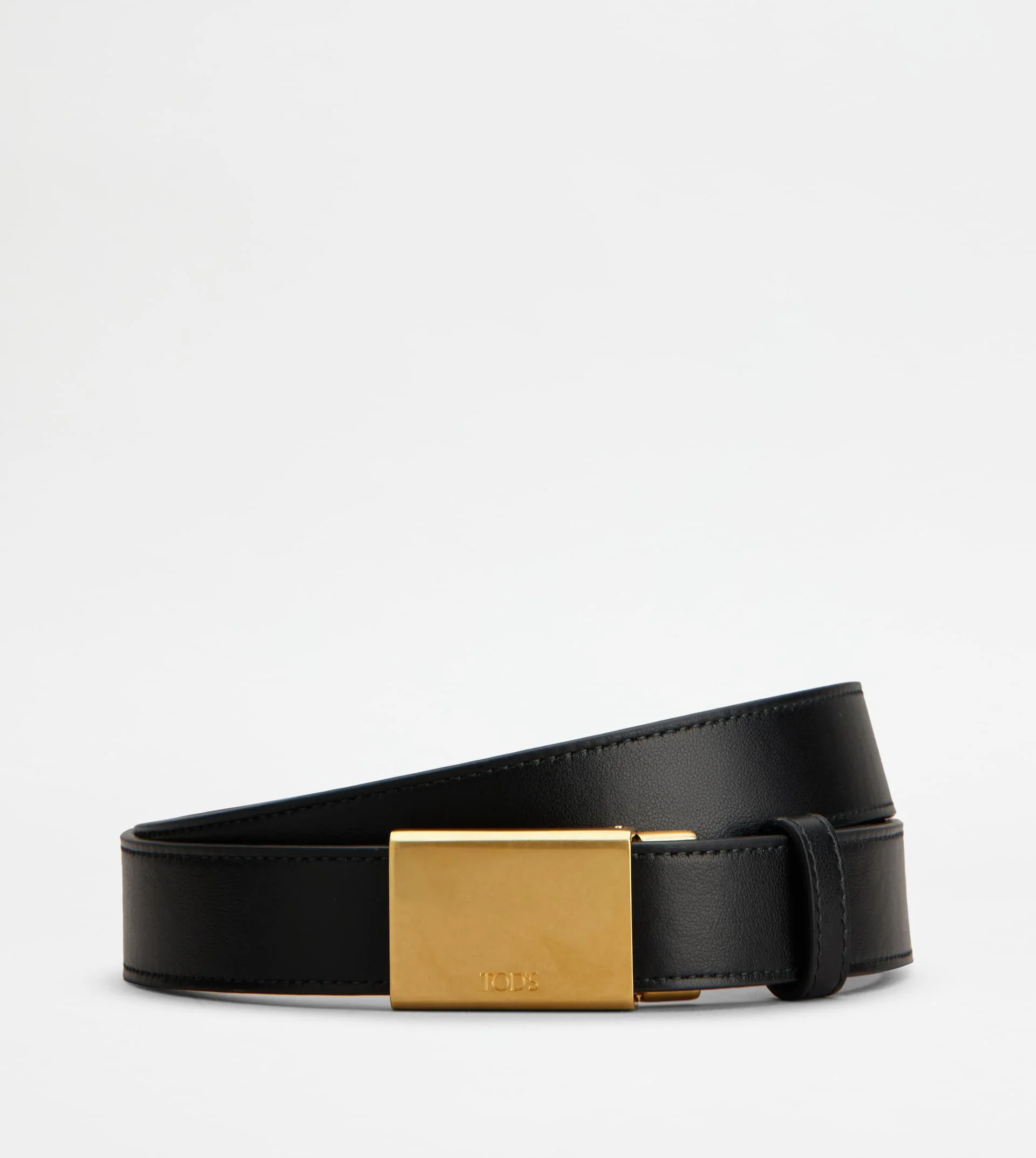 Belt in calfskin leather with branded metal buckle. A versatile and timeless accessory, for an informal elegance. - Made in Italy - Women's belt - Item crafted in calfskin leather - Branded metal buckle - Belt width: 1 in - Maintenance and care cards included - Branded dustbag