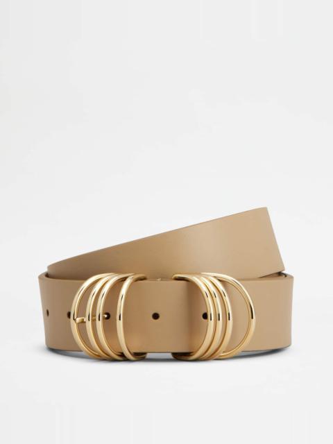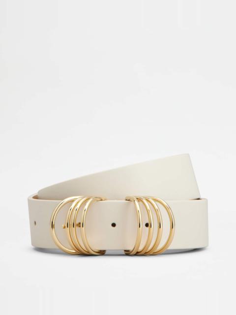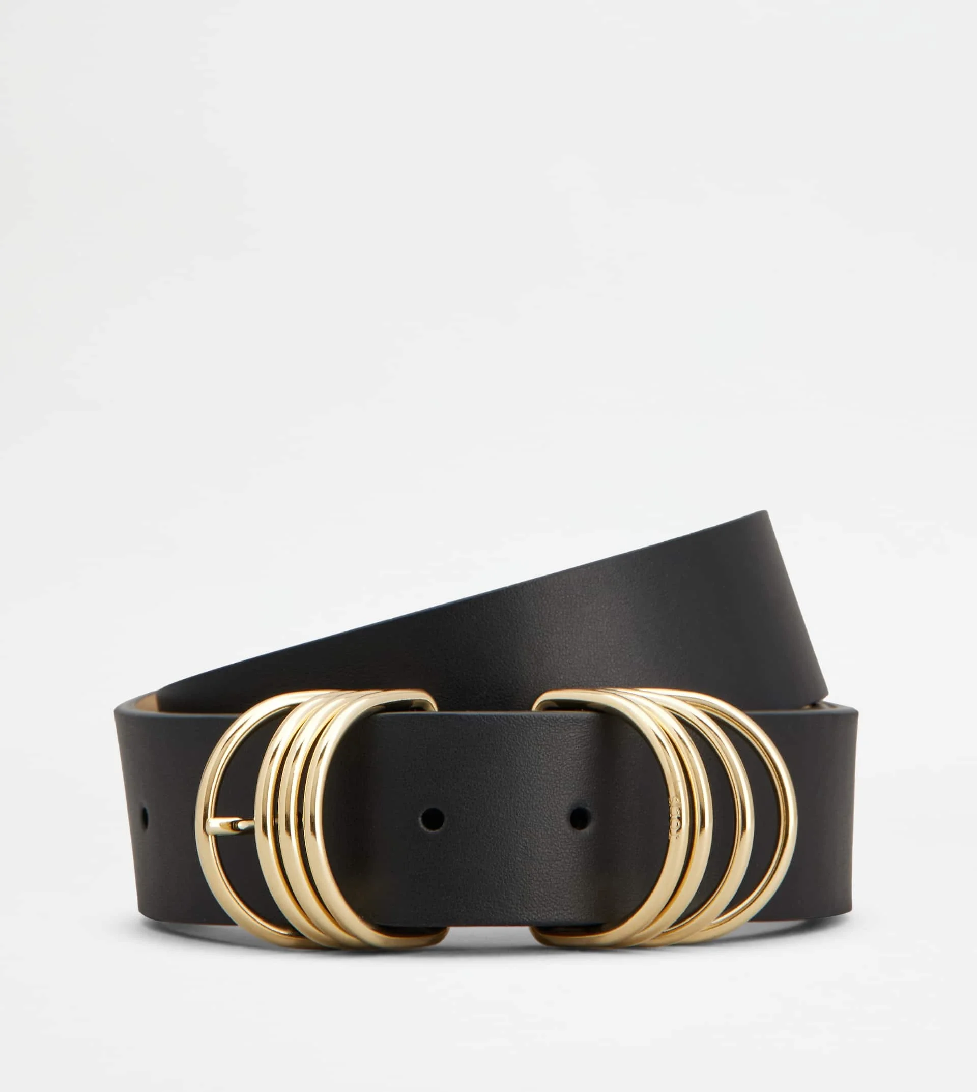 Belt in calfskin leather with tongue buckle and branded metal rings. A versatile and elegant accessory for the everyday look. - Made in Italy - Belt in leather - Item crafted in calfskin leather - Branded metal buckle and rings - Belt width: 1.4 ins - Maintenance and care cards included - Branded dustbag
