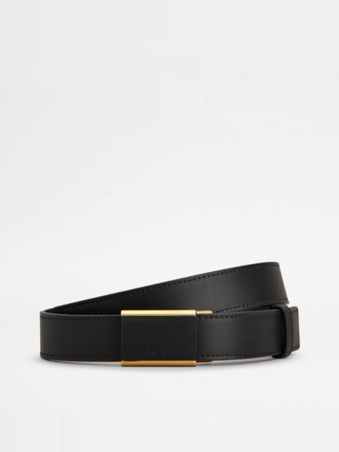 Belt in soft calfskin leather, with covered buckle and stamped Tod's logo. An accessory with informal elegance, suited for any outfit. - Made in Italy - Belt in leather - Item crafted in calfskin leather - Covered buckle with stamped Tod's logo - Belt width: 1 in - Maintenance and care cards included - Branded dustbag