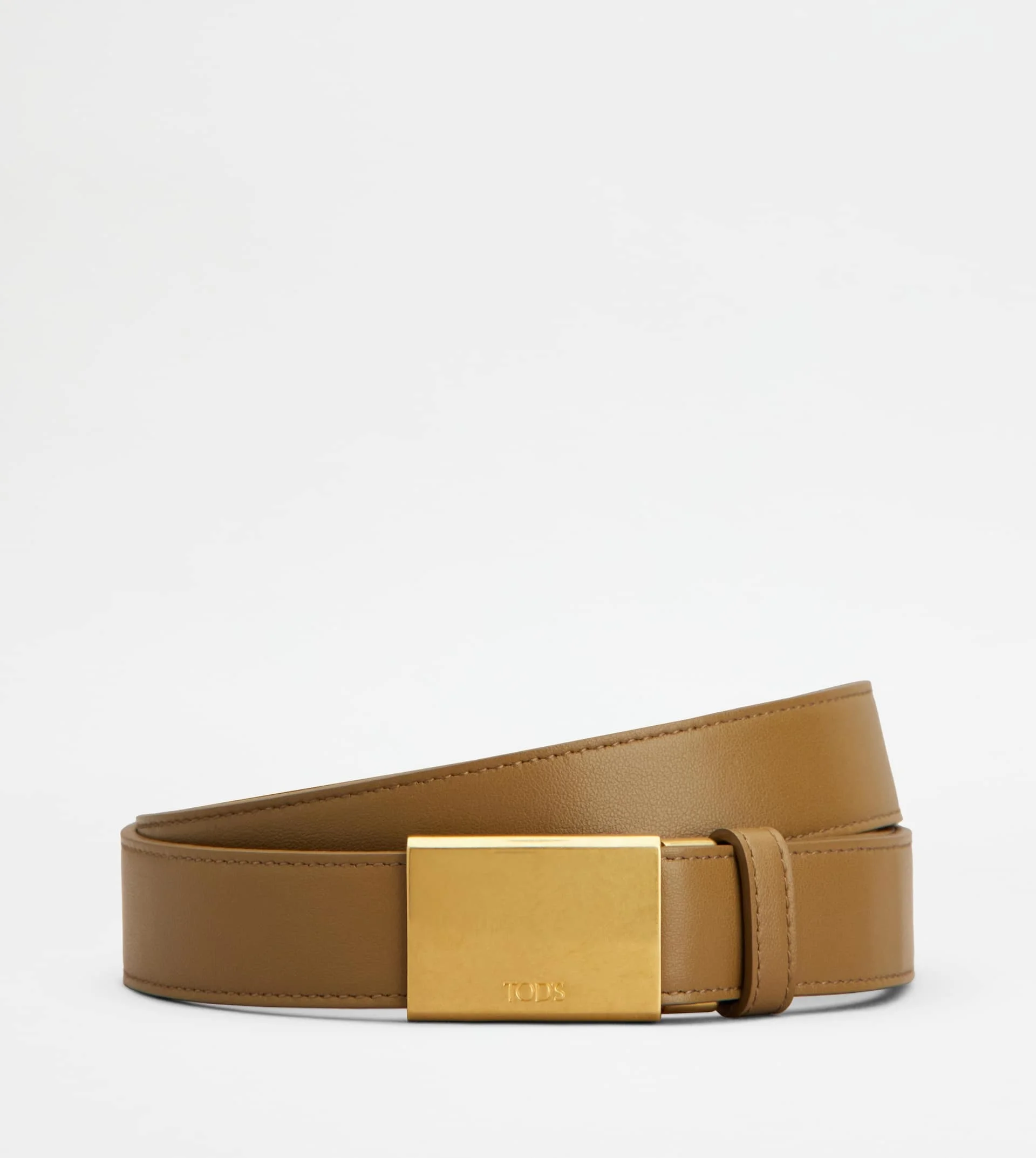 Belt in calfskin leather with branded metal buckle. A versatile and timeless accessory, for an informal elegance. - Made in Italy - Women's belt - Item crafted in calfskin leather - Branded metal buckle - Belt width: 1 in - Maintenance and care cards included - Branded dustbag