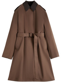 belted trench coat Highlights - Brown - Belted waist - Two side welt pockets - Long sleeves - Epaulettes Made in Italy Composition Outer: Sheepskin 100%, Cotton 100% Lining: Cotton 100%