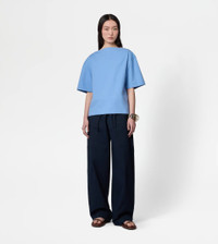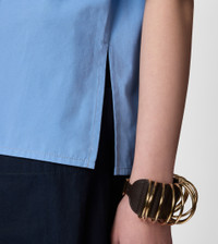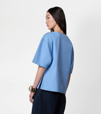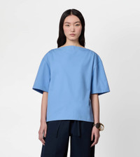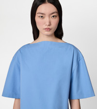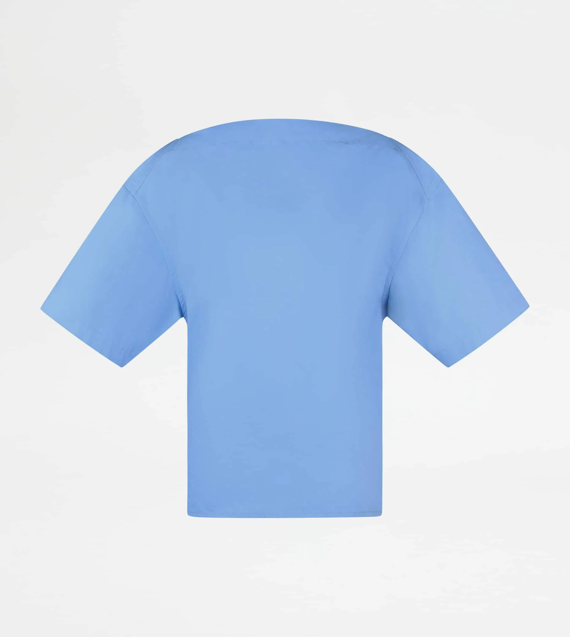 Short-sleeved bouse with boxy shape, boat neckline and side slits. Crafted in cotton poplin with compact hand and slightly wavy look, it is perfect for any look thanks to its essential and refined line. - Made in Italy - Blouse in cotton - The model is 5' 9'' and wears size 38 (IT) - Item composition: 100% cotton - Fitting: regular - Maintenance and care cards included