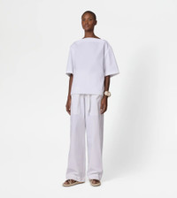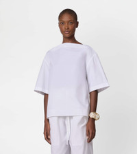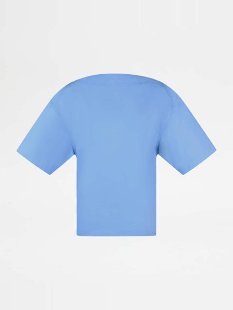 Short-sleeved bouse with boxy shape, boat neckline and side slits. Crafted in cotton poplin with compact hand and slightly wavy look, it is perfect for any look thanks to its essential and refined line. - Made in Italy - Blouse in cotton - The model is 5' 9'' and wears size 38 (IT) - Item composition: 100% cotton - Fitting: regular - Maintenance and care cards included