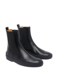 round-toe leather booties Highlights - Black - Leather upper - Lateral elasticated panels - Rubber sole - Pull tab - Round toe Imported Composition Sole: Rubber 100% Lining: Fabric 100% Outer: Calf Leather 100%