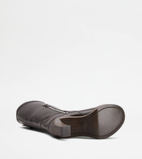 Biker-style references and codes from the saddlery world meet in these boots with a slightly angled boot leg. Crafted in calfskin leather with a shiny brushed finishing, they feature a strap on the outside with a branded buckle. Featuring a leather outsole, they come with a squared heel that makes them elegant and sophisticated, yet easy to wear. - Made in Italy - Heeled boots - Calfskin leather upper - Strap on the outside - Zip on the inside - Leather insole - Stitched welt - Leather heel 3.3 ins - Leather outsole - Maintenance and care cards included - Branded dustbag