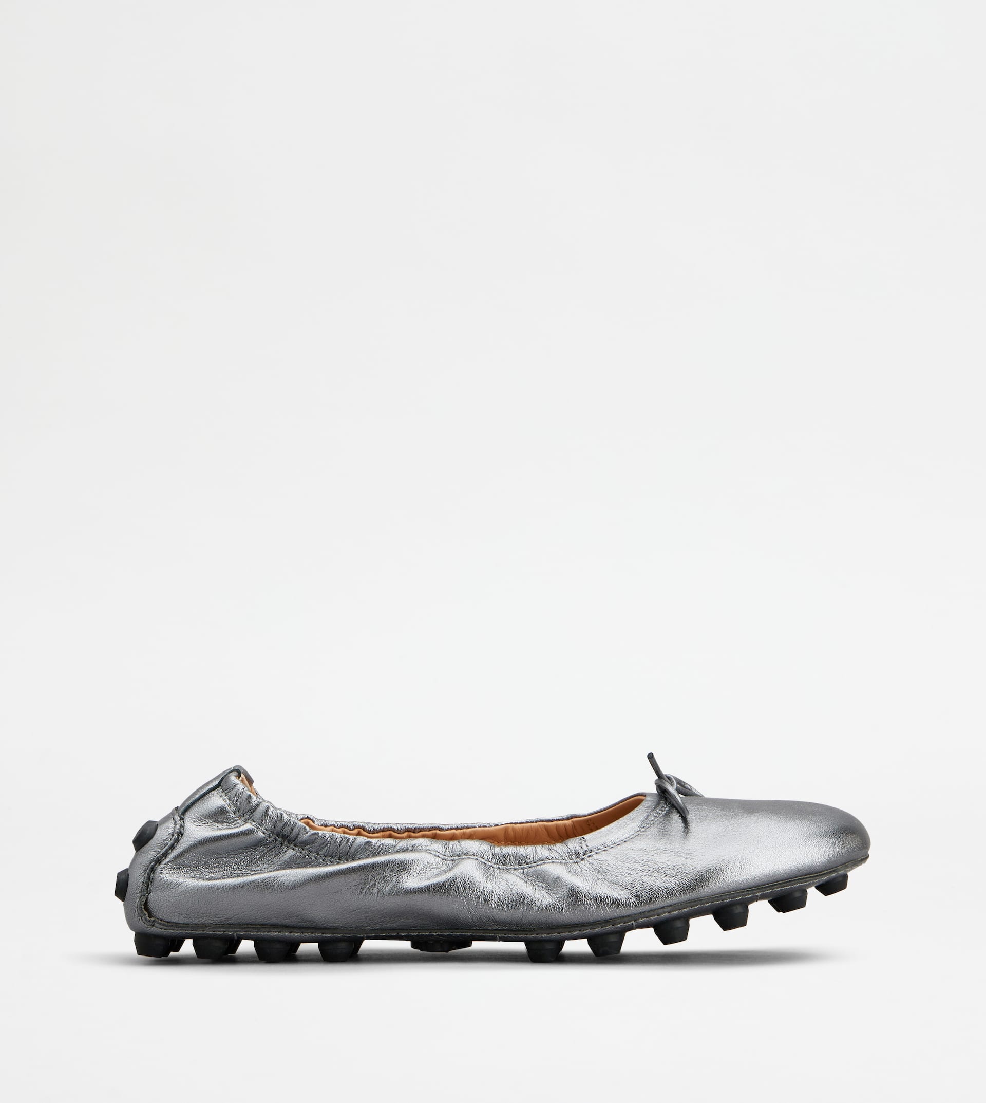 The characteristic outsole with rubber pebbles reaching up to the heel is a signature emblem of Tod's world. These ballerinas reintroduce their contemporary version, with emphasized rubber pebbles. Crafted in laminated nappa leather, with a bow and an elastic trim, they combine style, comfort and femininity. - Made in Italy - Ballerinas with elastic - Leather upper - Laminated finishing - Front bow - Leather insole - Maxi rubber pebble outsole - Rubber pebble detailing on the heel - Maintenance and care cards included - Branded dustbag