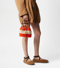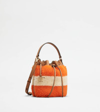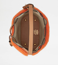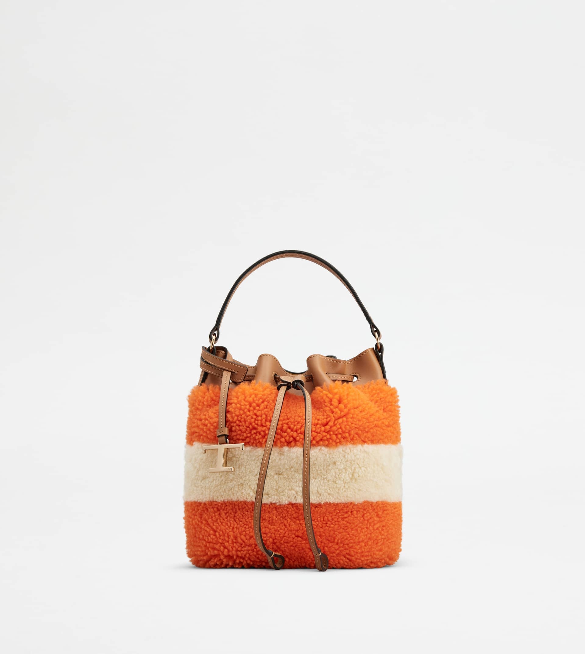 BUCKET BAG IN SHEEPSKIN AND LEATHER MICRO - ORANGE, OFF WHITE, BROWN