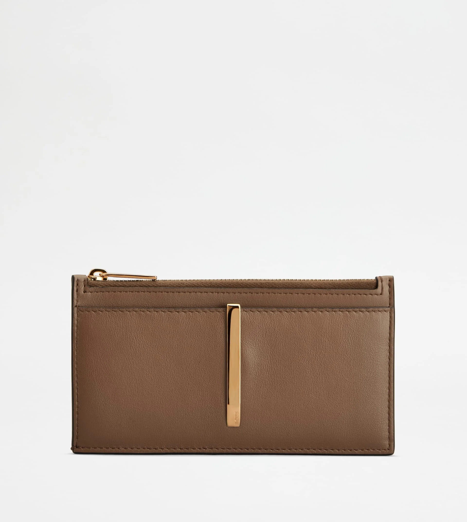 Credit card holder in refined calfskin leather, with metal bar accessory fixed on the front pocket. Featuring a zipped central compartment, it comes with flat pocket and cardslots on the back. - Dimensions: L 6.3 ins x H 3.3 ins x D 0.6 ins - Made in Italy - Card holder in leather - Item crafted in calfskin leather - Front pocket - Metal bar accessory on the front - Zip closure - 1 flat pocket on the back - 7 cardslots on the back - Maintenance and care cards included