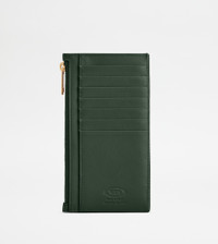 Credit card holder in refined calfskin leather, with metal bar accessory fixed on the front pocket. Featuring a zipped central compartment, it comes with flat pocket and cardslots on the back. - Dimensions: L 6.3 ins x H 3.3 ins x D 0.6 ins - Made in Italy - Card holder in leather - Item crafted in calfskin leather - Front pocket - Metal bar accessory on the front - Zip closure - 1 flat pocket on the back - 7 cardslots on the back - Maintenance and care cards included
