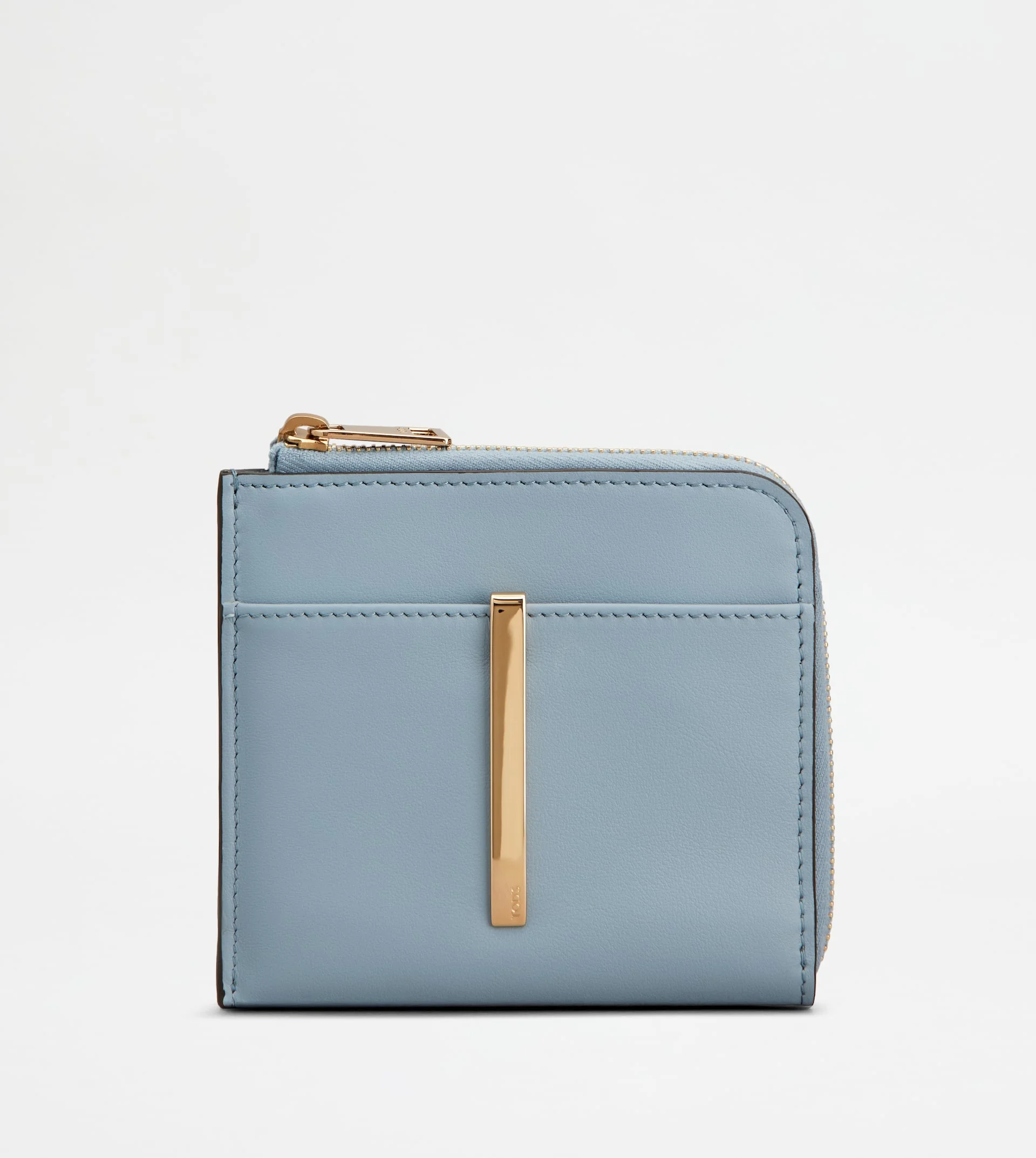 Card holder in soft calfskin leather, with branded metal bar accessory secured on the external pocket. Closed with a zip on two sides, it features a divider pocket and three cardslots on the inside. - Dimensions: L 4.5 ins x H 4.3 ins x D 0.6 ins - Made in Italy - Credit card holder - Item crafted in calfskin leather - Metal bar accessory on the front - 1 pocket on the front - Tod's logo stamped on the back - Zip closure - 1 internal pocket - 3 internal cardslots - Maintenance and care cards included