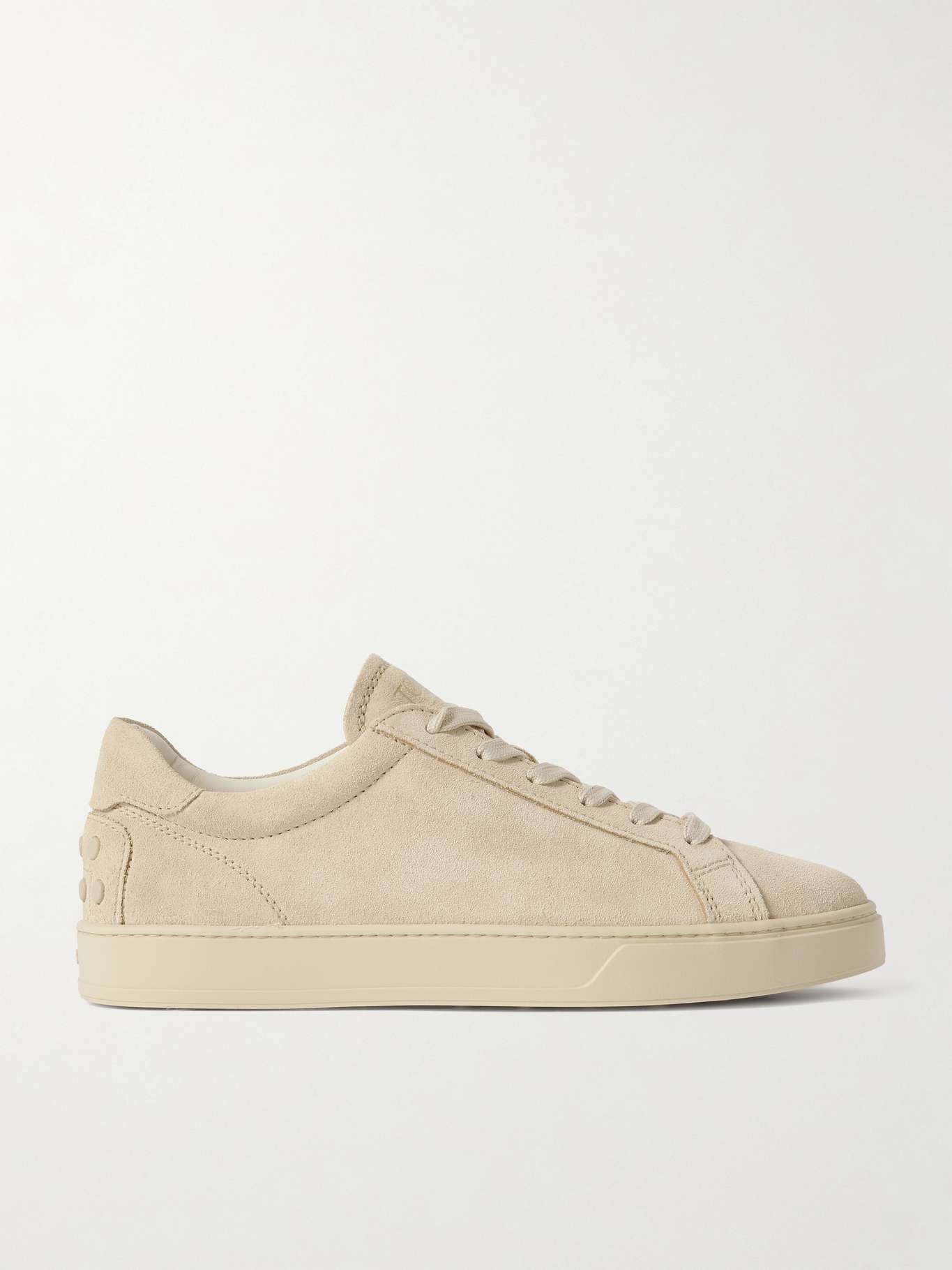 The understated profile of Tod’s ‘Cassetta’ sneakers means they’ll go with just about anything. They’ve been crafted in Italy from panels of plush suede and feature the label’s signature ‘Gommino’ rubber pebbles on the heel. Treat them with a protective spray before wearing them outdoors. Size & Fit - Fits true to size, take your normal size - Italian sizing Details & Care - Taupe suede (Calf) - Lace-up front