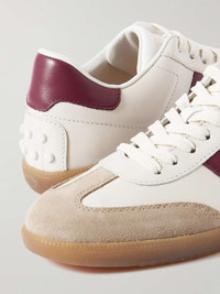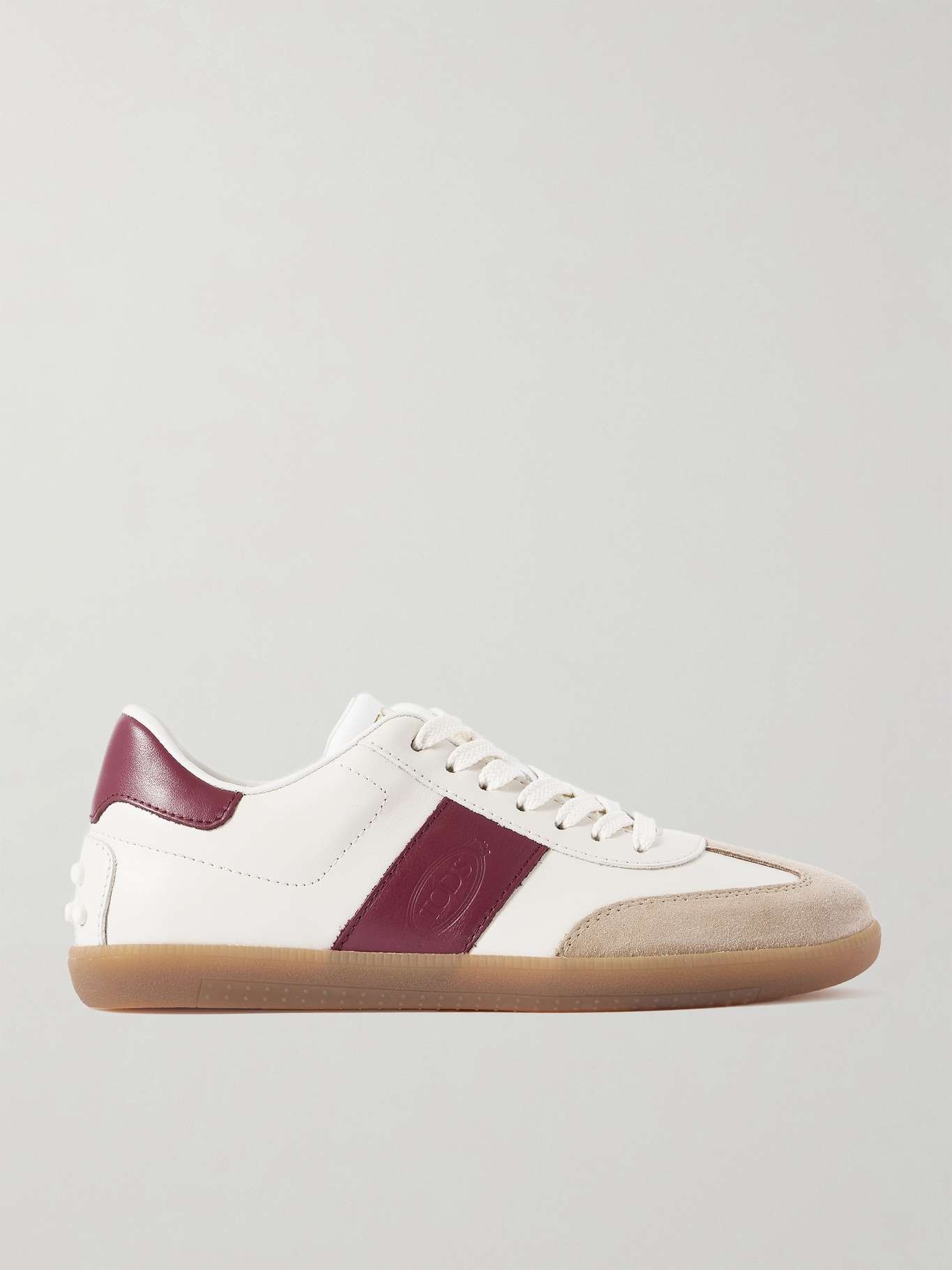 EDITORS'NOTES The understated profile of Tod’s ‘Cassetta’ sneakers means they’ll go with just about anything. They’ve been crafted in Italy from panels of supple leather and plush suede and feature the label’s signature ‘Gommino’ rubber pebbles on the heel. Treat them with a protective spray before wearing them outdoors. SIZE & FIT - Fits true to size, take your normal size - Italian sizing DETAILS & CARE - White and burgundy leather, beige suede (Calf) - Lace-up front