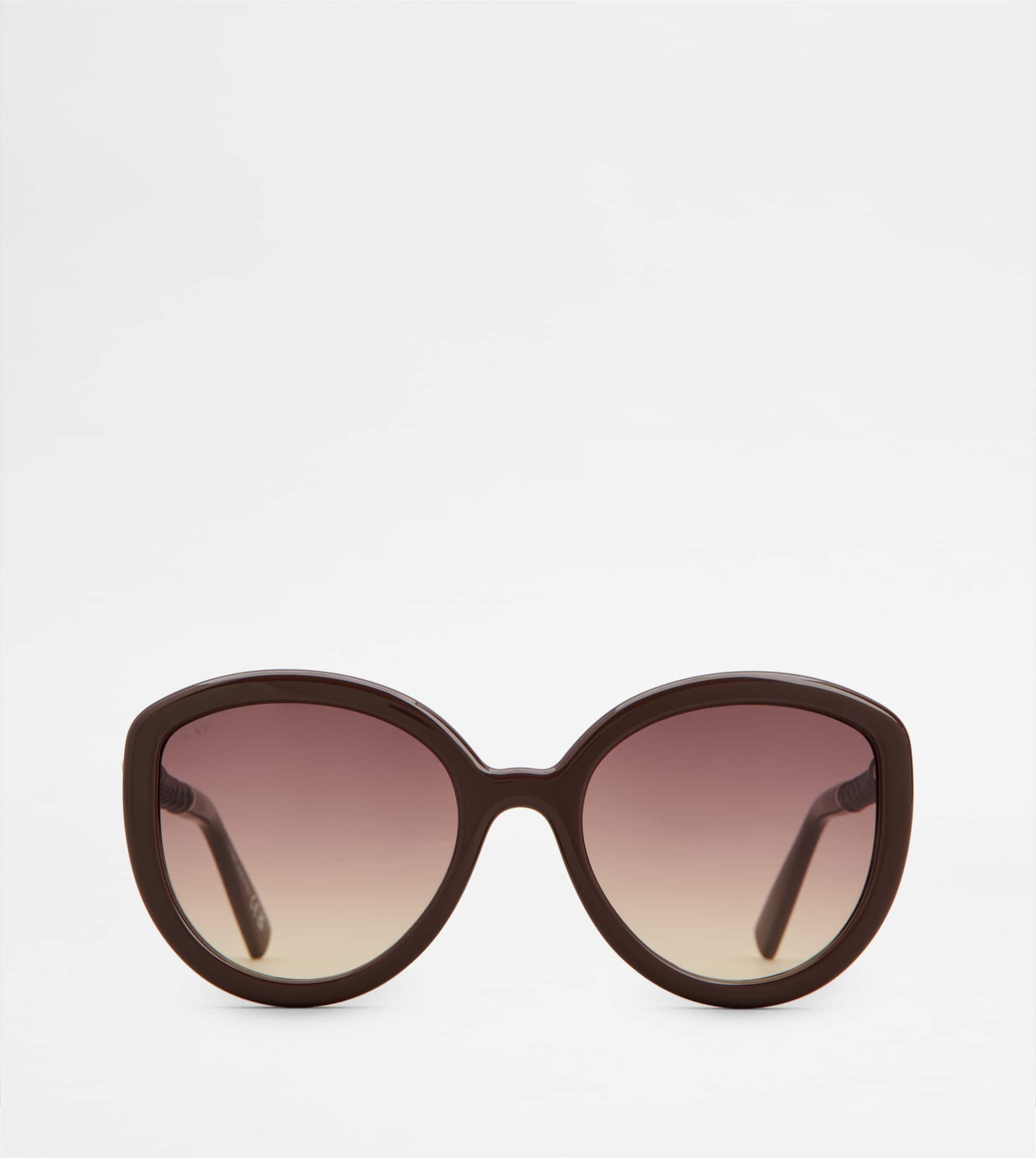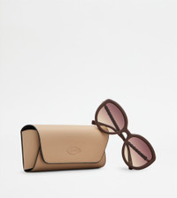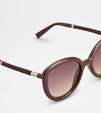 Sunglasses in injected acetate, with cat-eye shape. A style with an elegant tubular design, featuring the iconic leather weaving and the Tod's logo on the temples. - Made in Italy - Women's Tod's Sunglasses - Injected acetate and metal frame - Painted metal, leather and acetate temples - Dimensions: lens width 2.2 ins, nose bridge 0.8 ins, temple length 5.5 ins - UVA/UVB protection - Compliant with EN ISO 12312-1 standard - Branded case