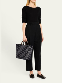 Tod's top handle bag in leather and chain-link pattern denim cotton Top handles with logo tag Shoulder straps Can be worn as a top handle or shoulder bag Open top with lobster clasp closure; side snap closure Interior, leashed zip pouch bag Lining: Leather/nylon/polyurethane Approx. 7.6"H x 11"W x 5.1"D Made in Italy Online Inquiries: BGS21_V68ZE| Store Inquiries: #4822481