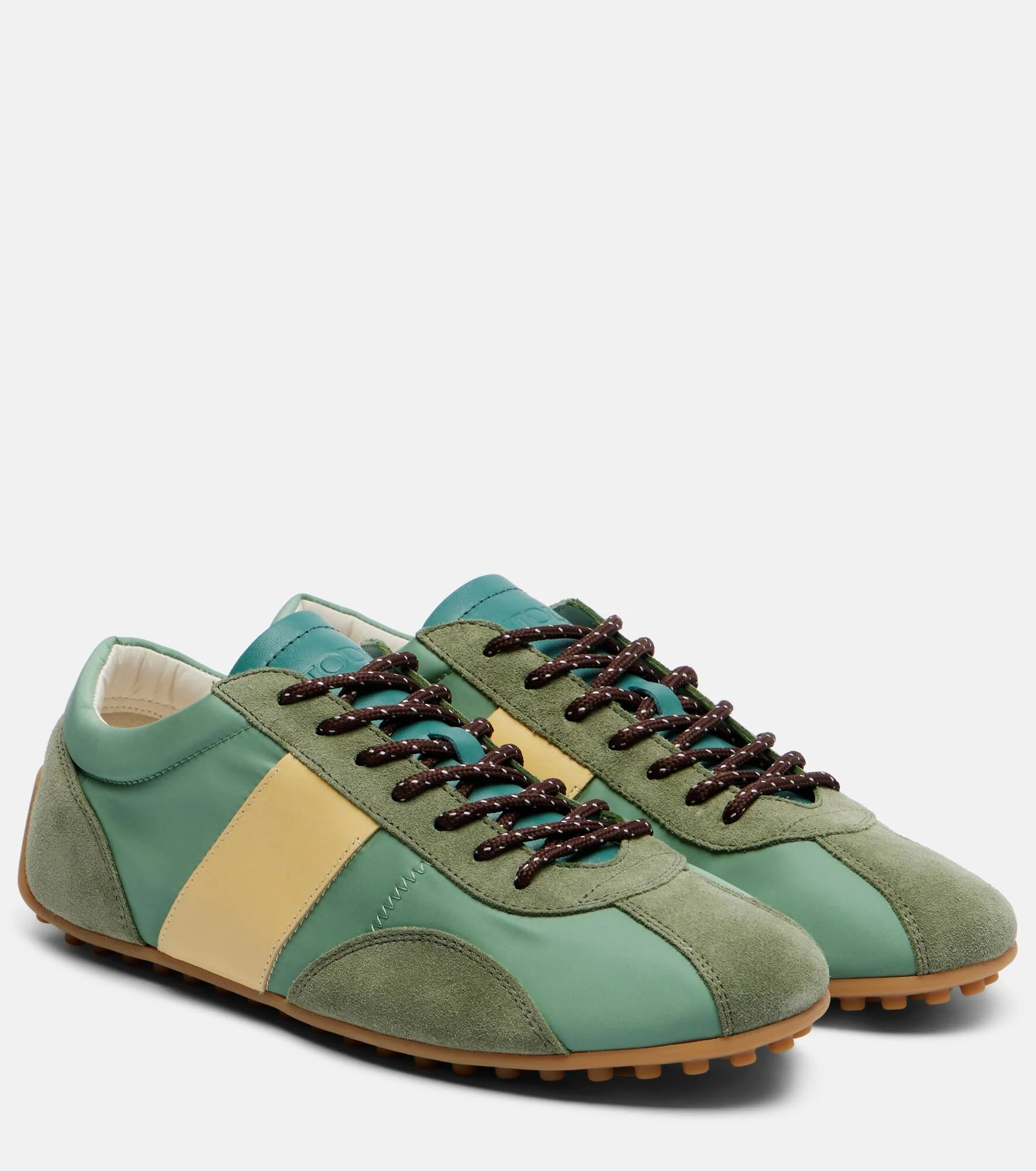 Tod's embodies the art of Italian craftsmanship with superior fabrications and timeless silhouettes that lend a sense of quiet sophistication. Expertly made from canvas and trimmed with suede, these sneakers are complete with logo detailing on the tongues. Product Details - Upper: fabric - Lining: fabric - Sole: leather insole, signature pebbled rubber sole - Color: green - Toe shape: almond toe - Made in Italy - Includes: shoe box, extra laces, dust bag - Designer color name: T032+V009+G017+T815 - Closure: lace-up - Trim: leather (suede), leather - Item number: P01141763 Size & Fit - True to size - European sizes