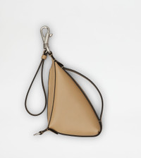 Inspired by the contemporary design of Tod's Meda Bag, this coin purse is crafted in soft calfskin leather. Featuring a fixed handle on the long side, it comes with a practical wristlet and metal snap hook for attaching it to your bag or belt. Closed with a zip, it comes with the Tod's logo stamped on the front. - Dimensions: L 4.9 ins x H 6.5 ins x D 2 ins - Made in Italy - Triangular coin purse - Item crafted in calfskin leather - Fixed wristlet - Snap hook - Tod's logo stamped on the front - Zip closure - Maintenance and care cards included