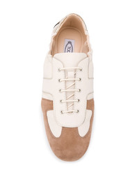 colour-block leather sneakers Combining a modernist aesthetic with high-quality construction and round-the-clock comfort, Tod's creates staple pieces that blend seamlessly into everyday life. Case in point: these colour-block leather sneakers. Comfy and stylish. Highlights - Beige calf leather/leather/rubber from tod's featuring round toe, front lace-up fastening, branded insole, contrasting panel detail and flat rubber sole. Made in Italy Composition Outer: Calf Leather 100% Lining: Leather 100% Sole: Rubber 100% SIZE & FIT Measurement HEEL 0.59 in(1.5 cm)