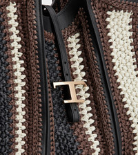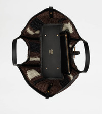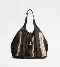 T TIMELESS SHOPPING BAG IN RAFFIA AND LEATHER MEDIUM - BLACK, BROWN, WHITE