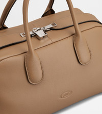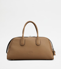 Characterized by maxi zip pulls, straps that elegantly cover the zip when closed, Tod's Darsena is defined by essential and feminine lines. Featuring characteristic tubular handles, it comes with the Tod's logo stamped on the front and a wrapped side padlock, a sophisticated distinctive trait. Here in fine natural-grained calfskin leather, this is a model with a distinctly urban nature, named after the city of Milan. - Dimensions: L 14.6 ins x H 7.1 ins x D 8.3 ins - Handles: height (drop) 5.5 ins - Made in Italy - Bauletto in leather - Item crafted in calfskin leather - Tod's logo stamped on the front - Padlock fit on the side - Double-slider zip closure - T-stitching detailing - Linen blend lining - Internal zipped pocket - Branded metal feet - Maintenance and care cards included - Branded dustbag
