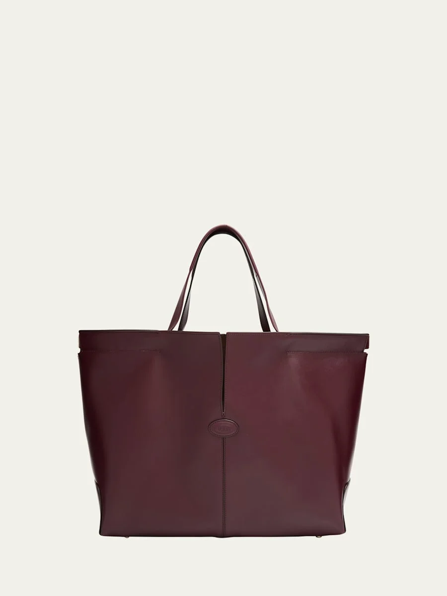 Tod's spacious "Di Bag Folia" tote bag is crafted in smooth calfskin leather and features iconic central stitching, elegant top slits, and a stamped oval logo Flat top handles, 6.7" drop Interior, removable zip top pouch Suede interior Feet protect the bottom of the bag Approx. 12.2"H x 19.3"W x 6.3"D Made in Italy Dustbag included Online Inquiries: BGS21_V6LV6| Store Inquiries: #5050057
