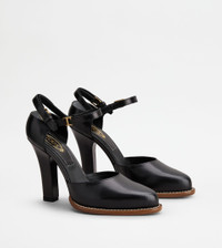 A synthesis of traditional craftsmanship and contemporary elegance, these d'orsay pumps are crafted in fine smooth leather, with a heel strap. The elastic strap at the instep is enhanced by the iconic metal T Timeless accessory. The outsole is crafted in nubuck, with exposed stitching welt. The heel height is balanced by an internal platform, adding comfort to this style with a distinctly feminine allure. - Made in Italy - Pumps with strap - Leather upper - Elastic strap with metal T Timeless accessory - Adjustable strap at the heel - Leather insole - Internal platform 0.8 ins - Covered heel with leather insert 4.1 ins - Nubuck outsole - Maintenance and care cards included - Branded dustbag